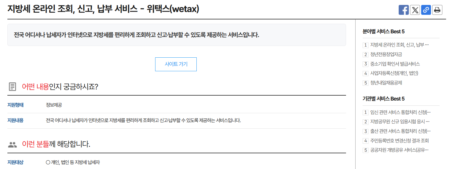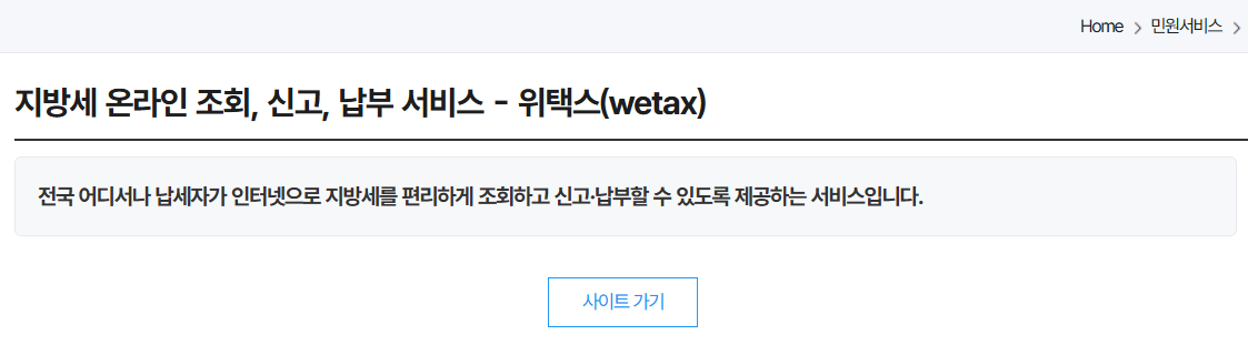 홈페이지 접속: 위택스 홈페이지에 접속합니다.